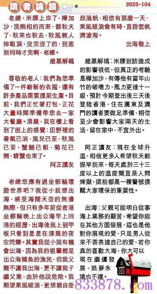 主题 : 104期:彩民推荐贴信读者论坛